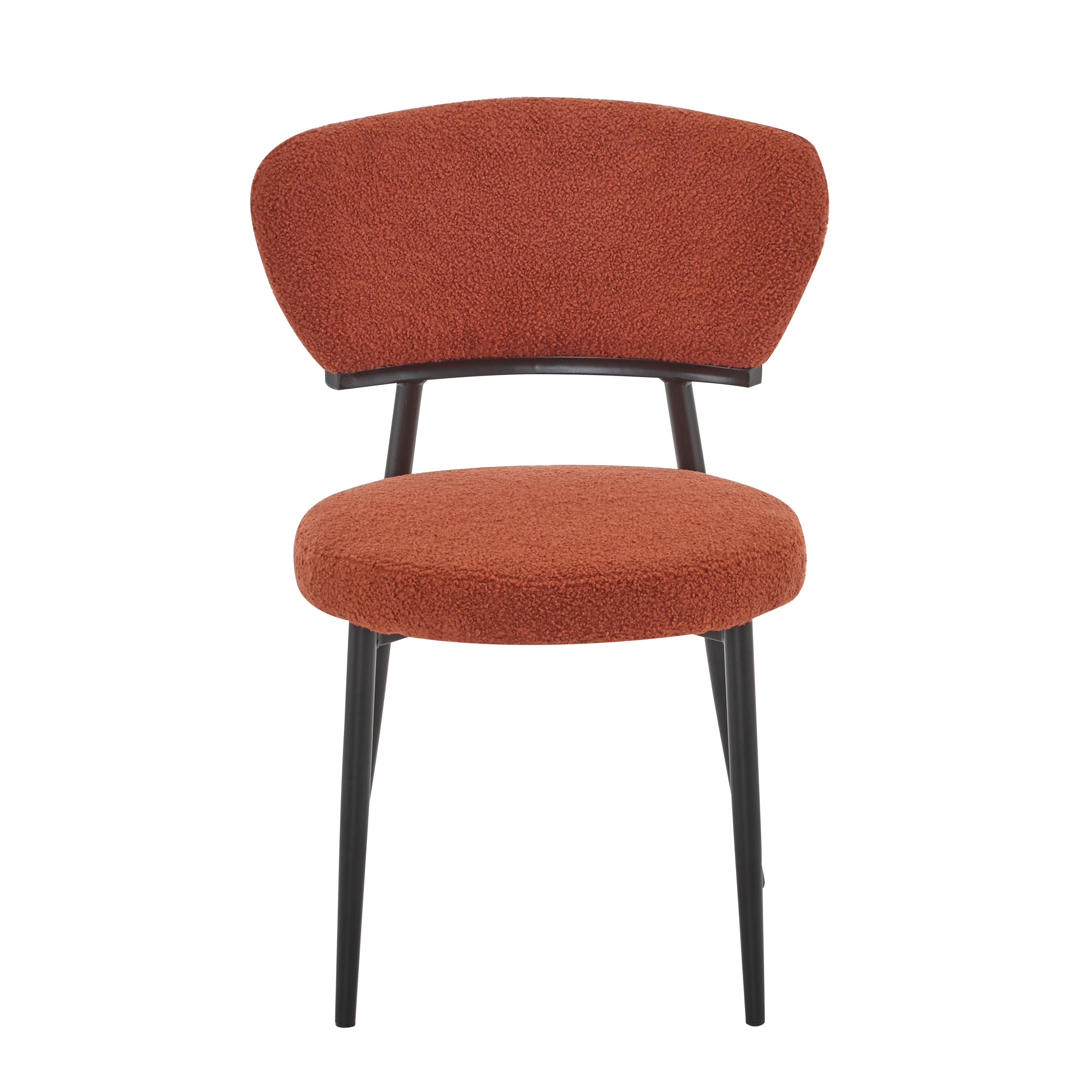 Mid-Century Upholstered Boucle Kitchen Dining Chairs with Black Metal Legs Set of 2