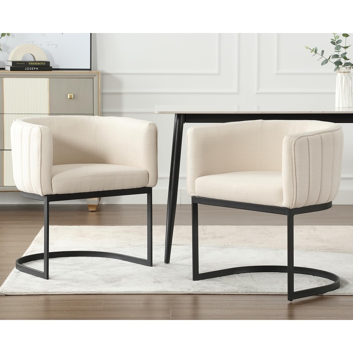 Modern Linen Fabric Dining Chairs Set of 2, Barrel Arm Upholstered Kitchen Chairs for Living Room & Dining Room