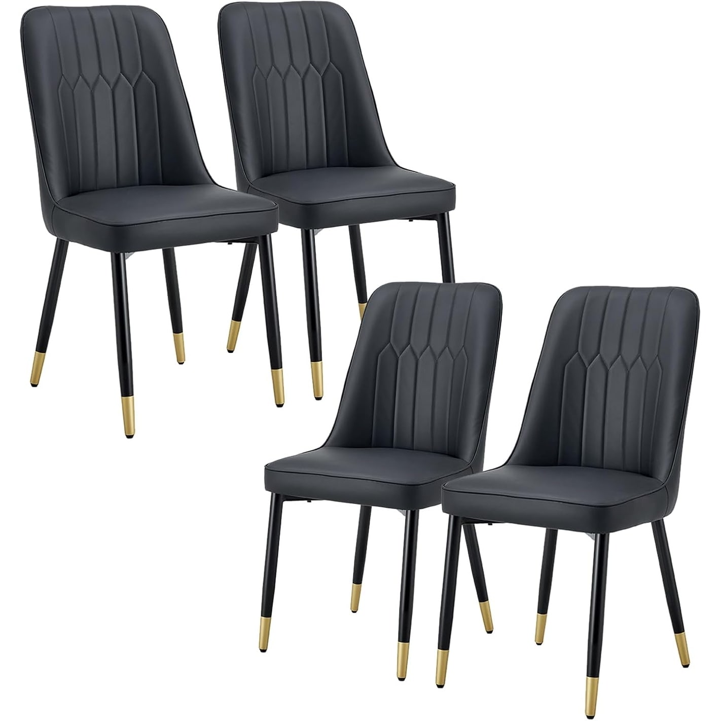 Set of 4 Armless PU Leather Dining Chairs with Metal Legs, Ergonomic Design for Kitchen or Dining Room