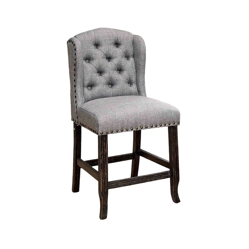 Rustic Style 2pc Counter Height Chair Nailhead Trim Wingback Bold Distressed Antique Black And Light Gray Finish Dining Room