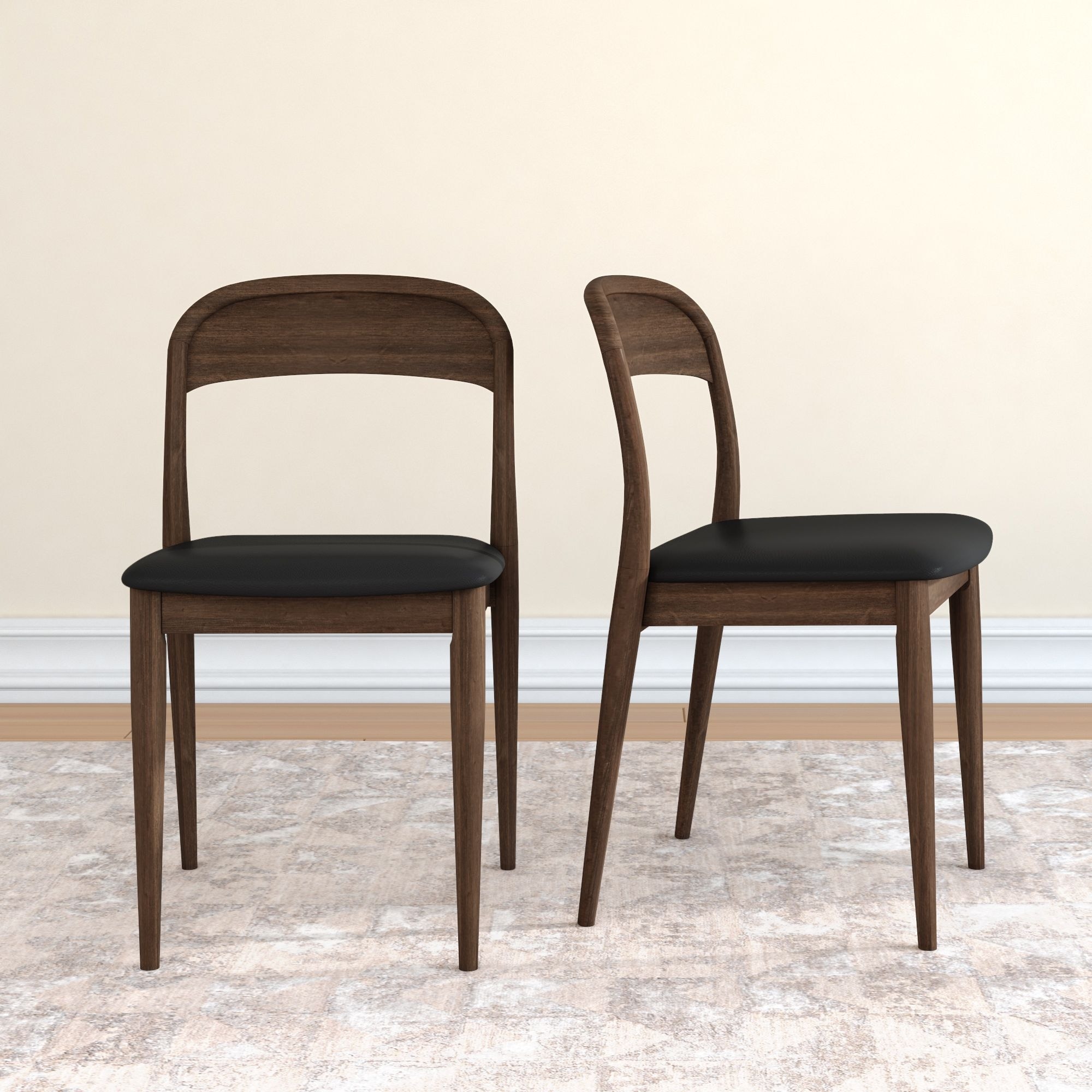 Brivo Artisan Curved Open-Back Dining Chairs (Set of 4) Mid-Century Modern Solid Wood Frame with Premium Leather Seat