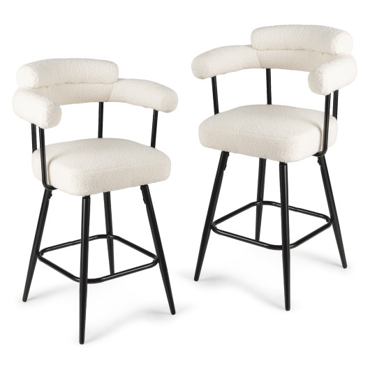 Costway Swivel Bar Stool Set of 2 Counter Height Chairs with Curved Back and Arms-White