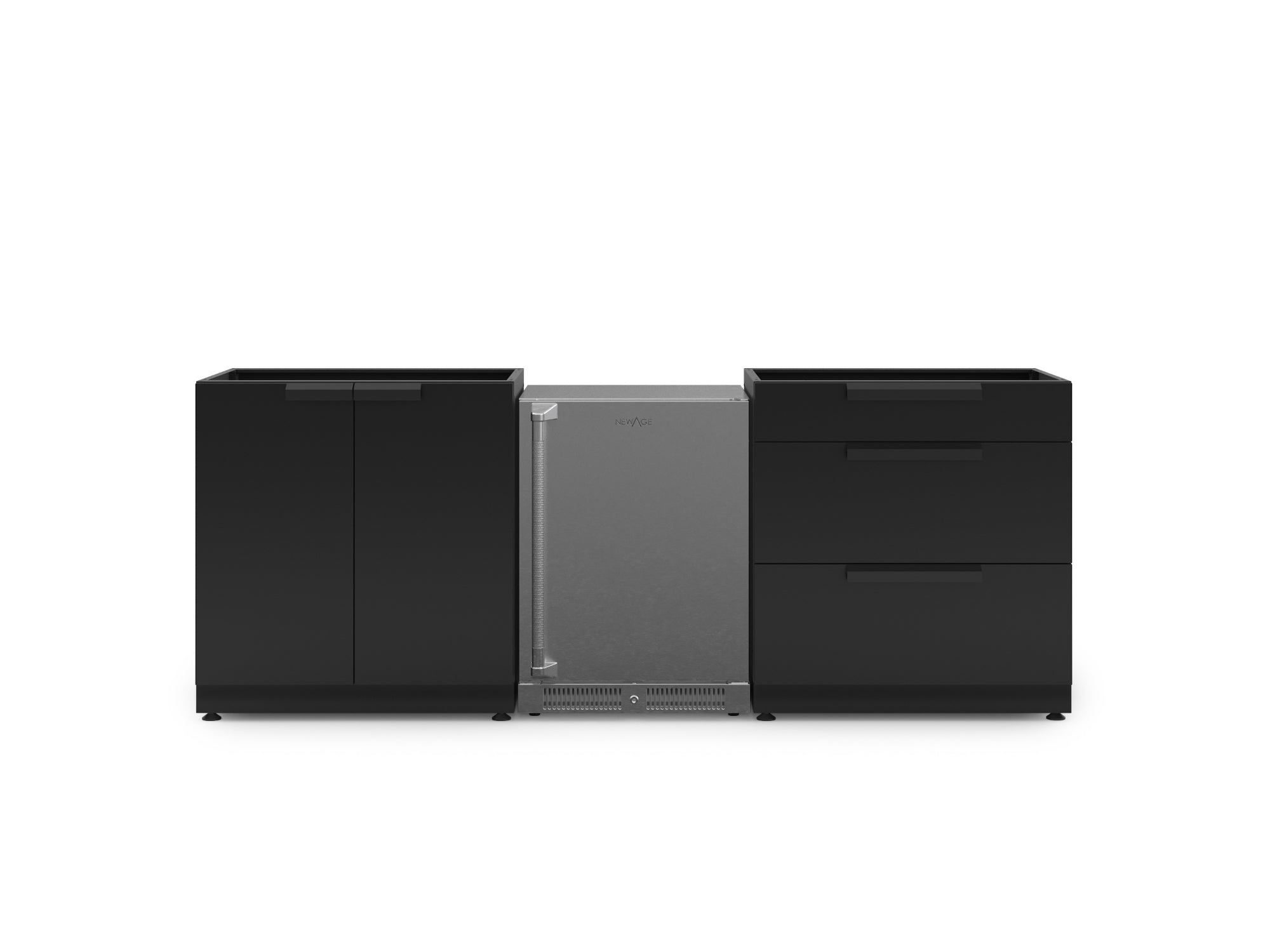 NewAge Outdoor Kitchens Aluminum 3-Piece Cabinet Set with 3-Drawer, 2-Door Cabinet, and Stainless Steel Door Fridge