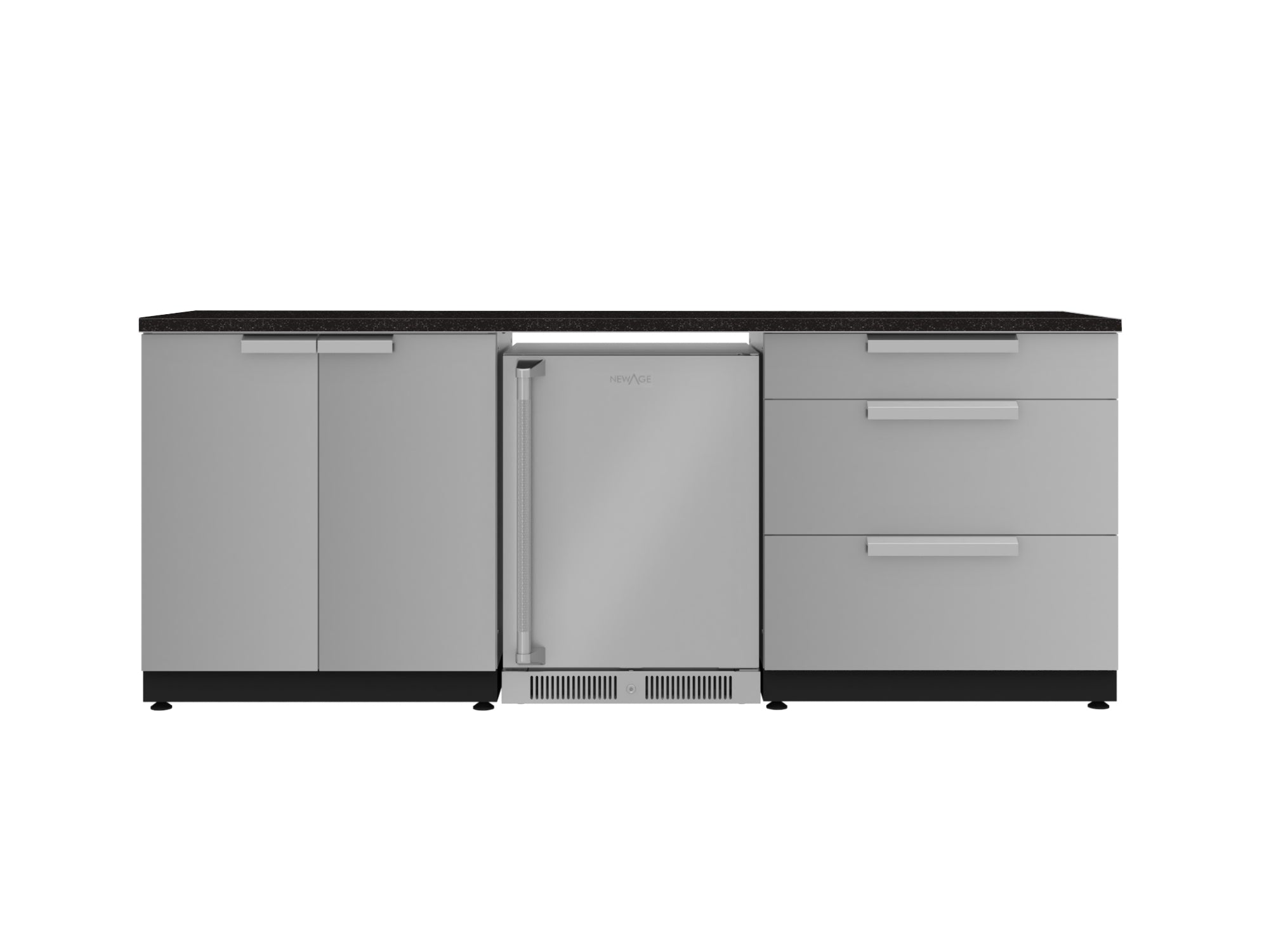 NewAge Outdoor Kitchens Stainless Steel 3-Piece Cabinet Set with 3-Drawer, 2-Door Cabinet and Fridge