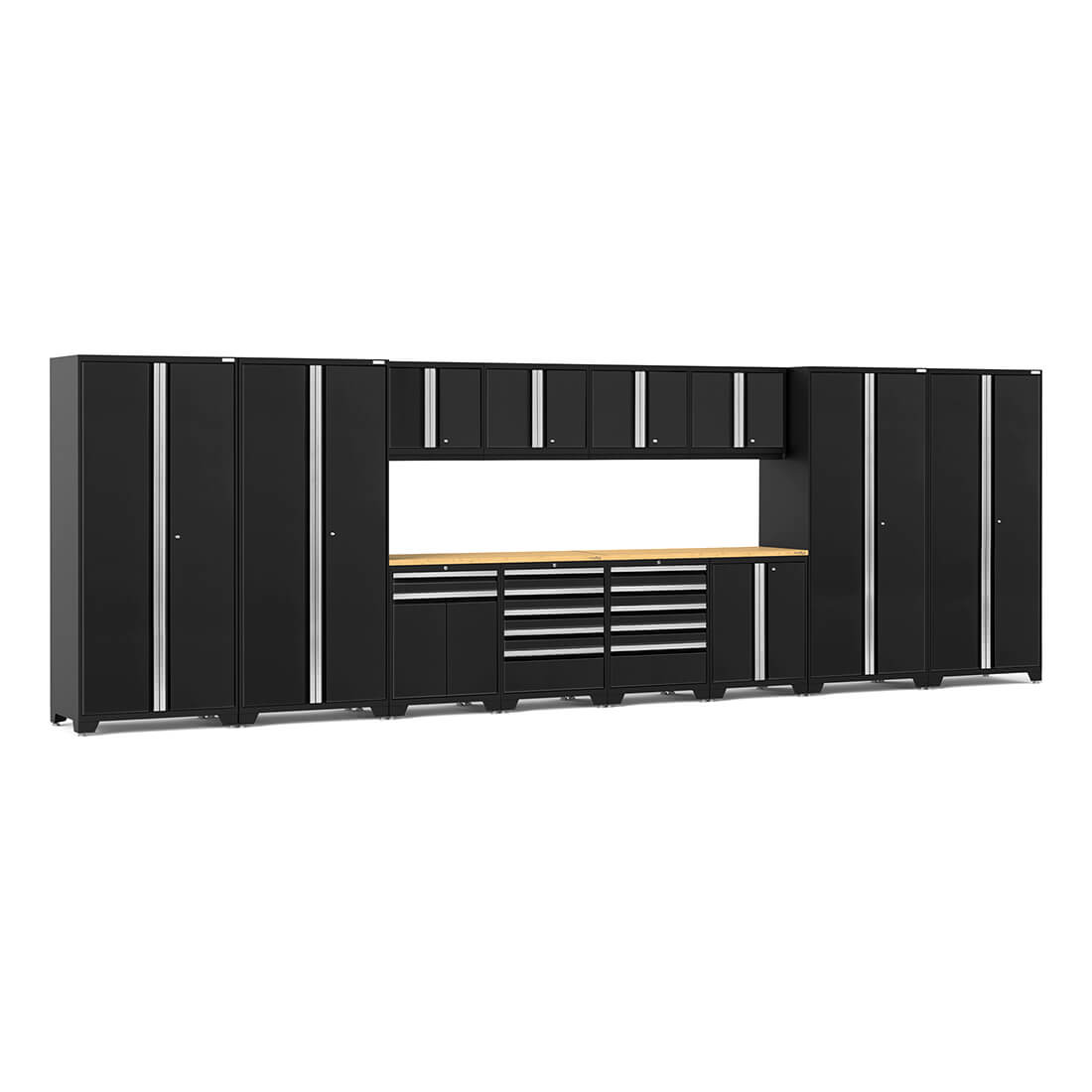 Newage Products Pro 3.0 Series 14-Piece Garage Cabinet Set With Multi-Function Cabinet, Black / Bamboo Worktop / None