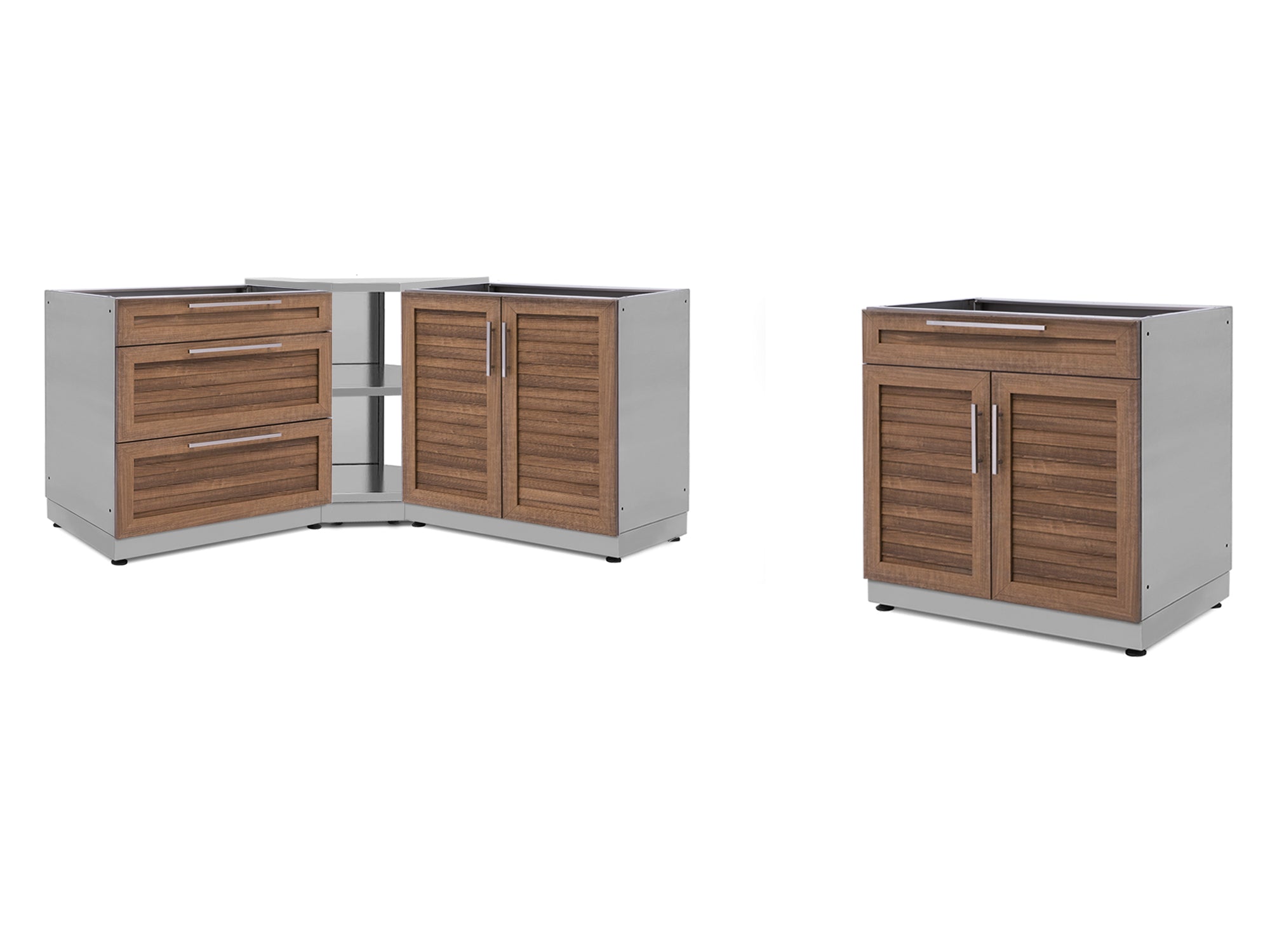 NewAge Outdoor Kitchens Stainless Steel 4-Piece Cabinet Set with 3-Drawer, 2-Door, Corner Shelf and 2-Door Drawer Cabinet