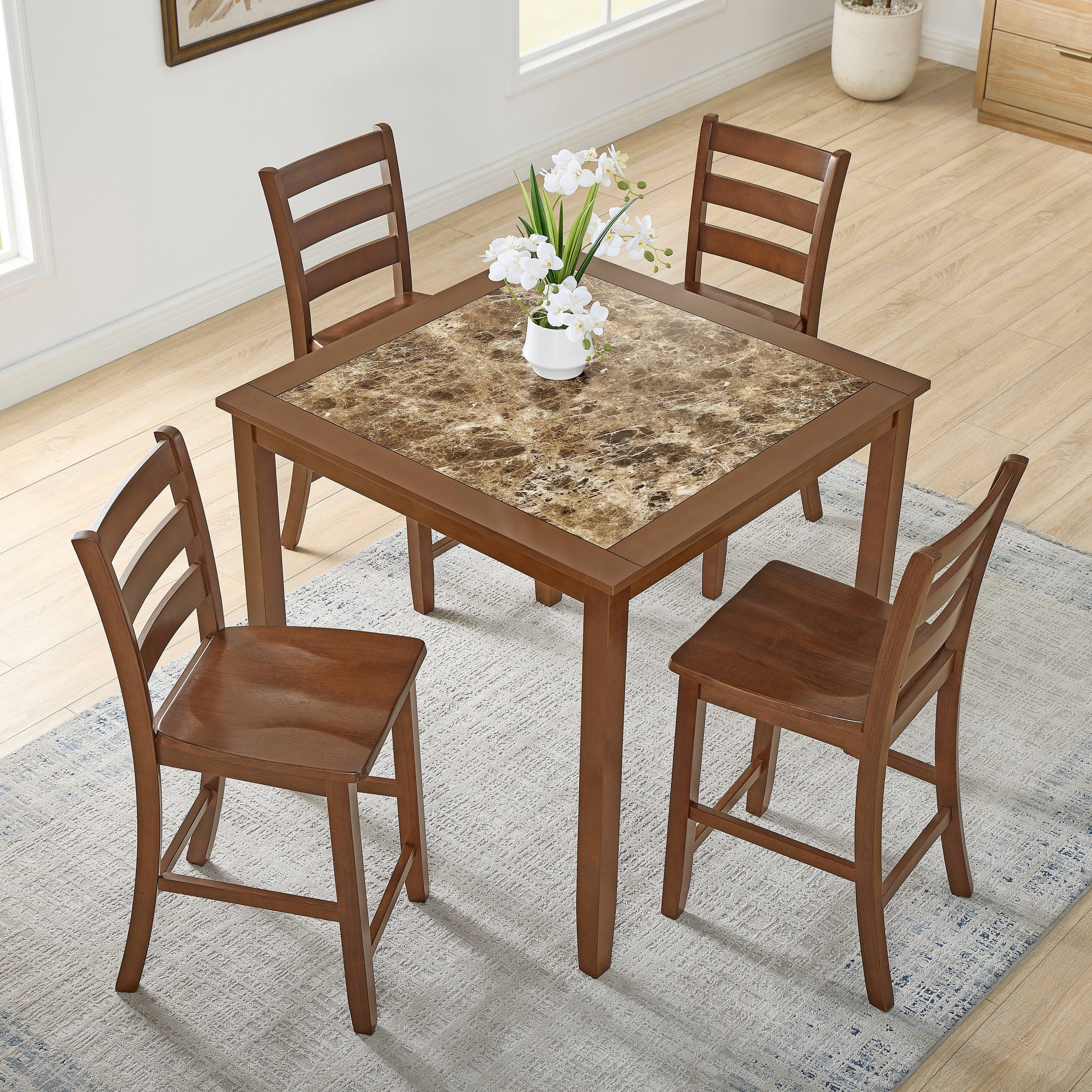 Retro-Style 5-Piece Dining Set - Brown Wooden Breakfast Table with Matching Bar Chairs for Living Room & Dining Room.
