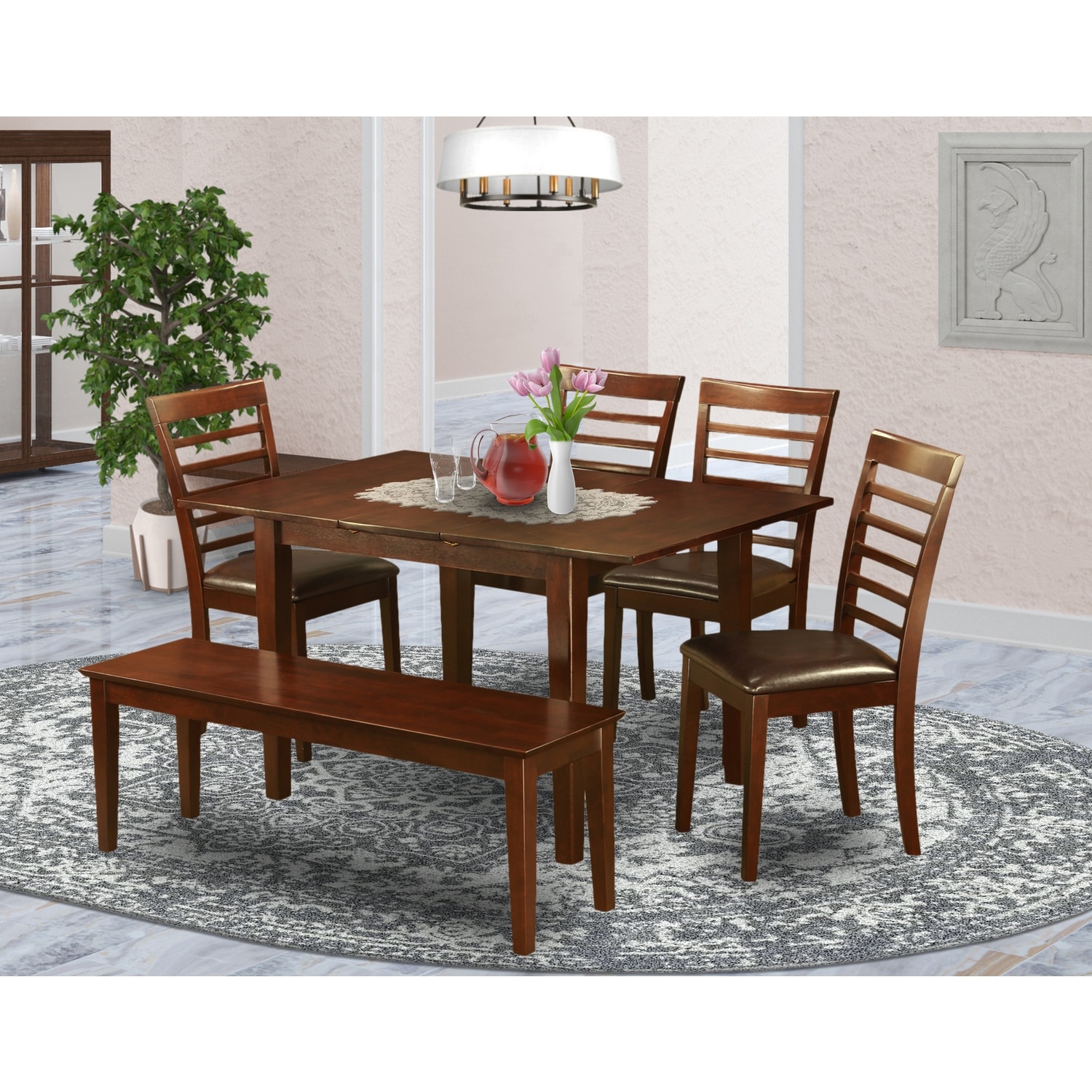 Dining Room Furniture Casual Modern 6pc Set Dining Table 4x Side Chairs and A Bench Rubberwood and Birch veneers Espress