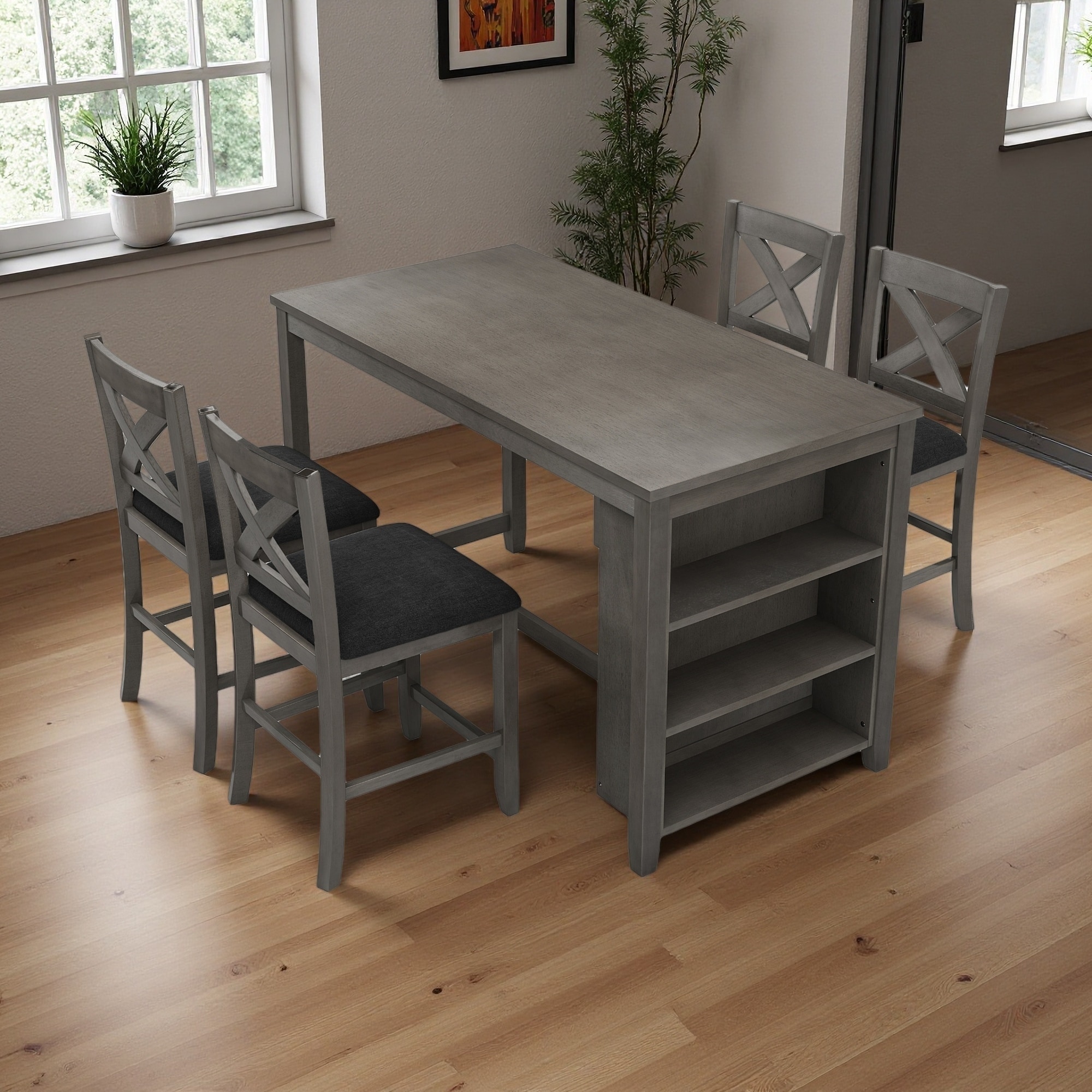 5-Piece Rustic Farmhouse Counter Height Dining Set, Wooden Bar Table with 4 Chairs, Ideal for Dining Room