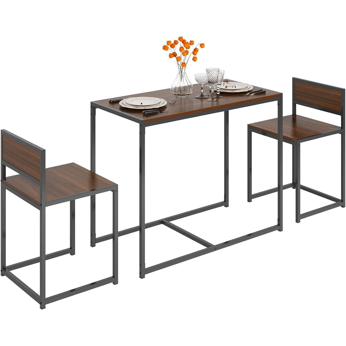 Compact Dining Table Set with 2 Chairs, 3-Piece Small Space-Saving Breakfast Table for Kitchen, Living Room