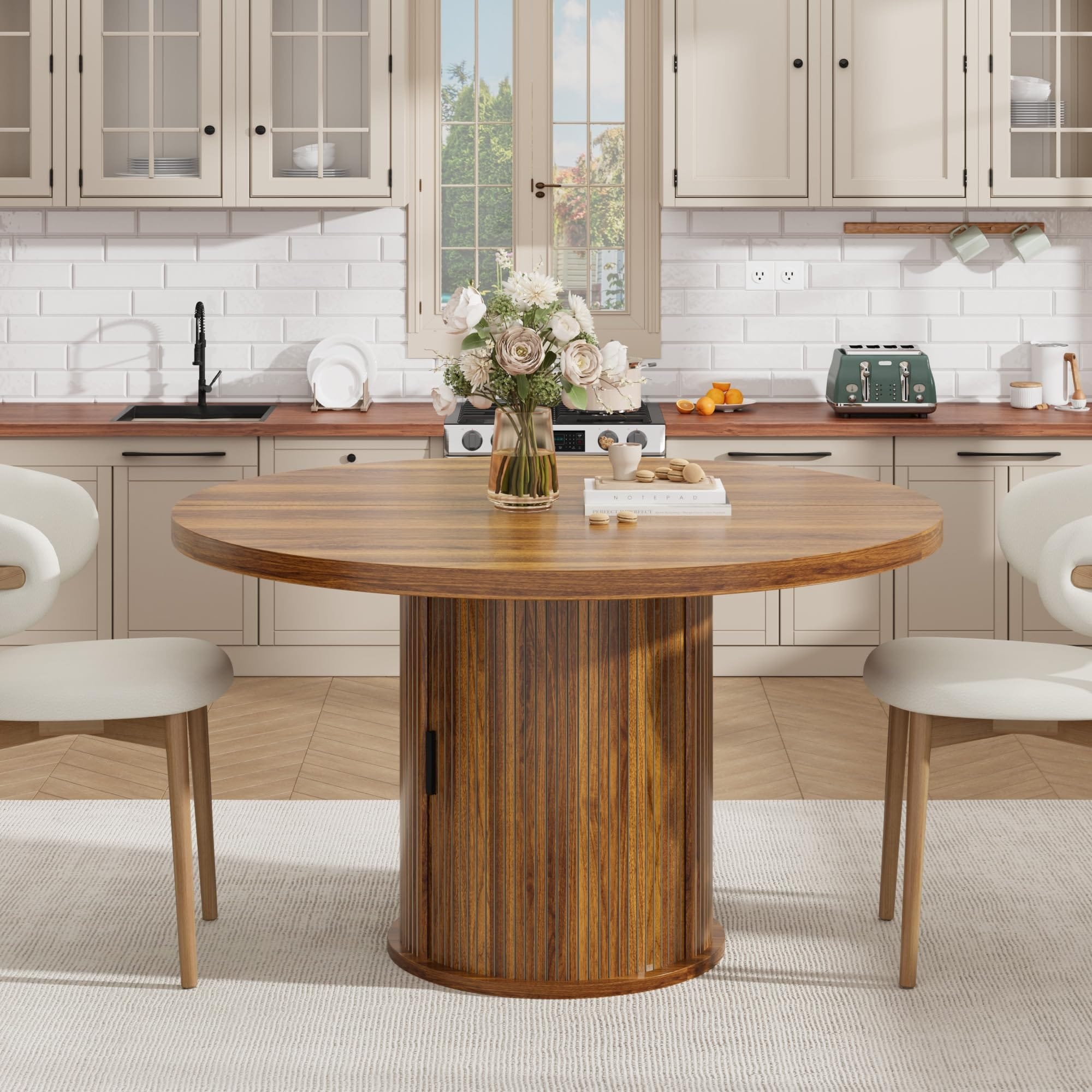 47" Kitchen Table for 4-6 People, Circle Tables with Sturdy Pedestal Base