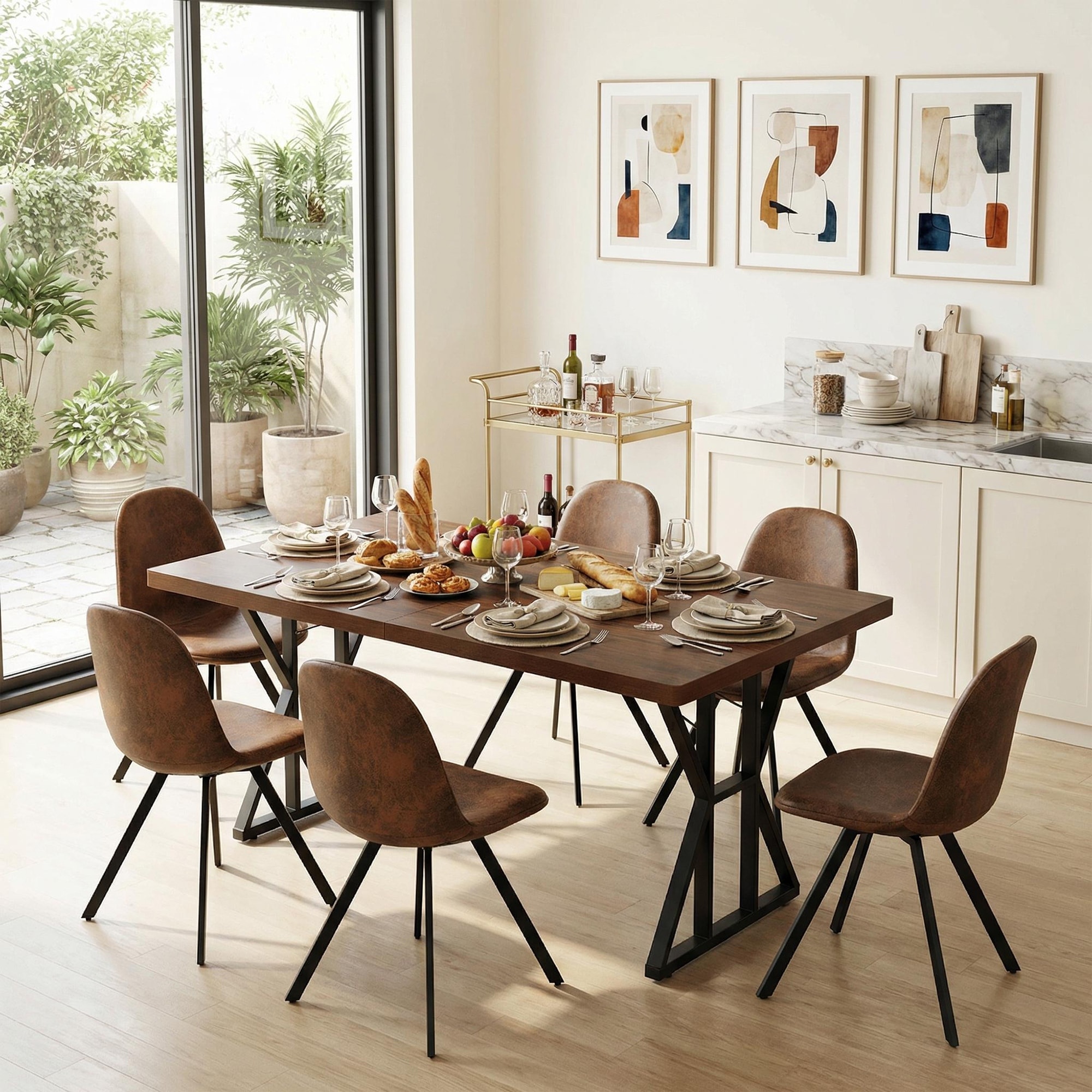 FurnitureR 63" Industrial Dining Table for 4–6, Wood Grain MDF Top with Metal X-Base, Rectangular Kitchen Table, Brown