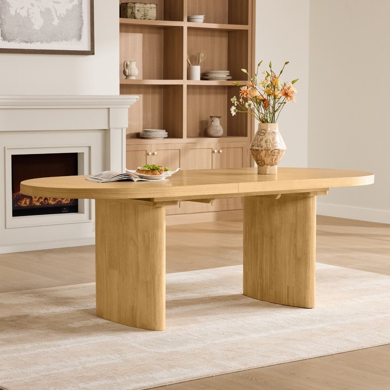Spruce & Spring Modern 75" Extendable Oval Dining Table with Curved Base