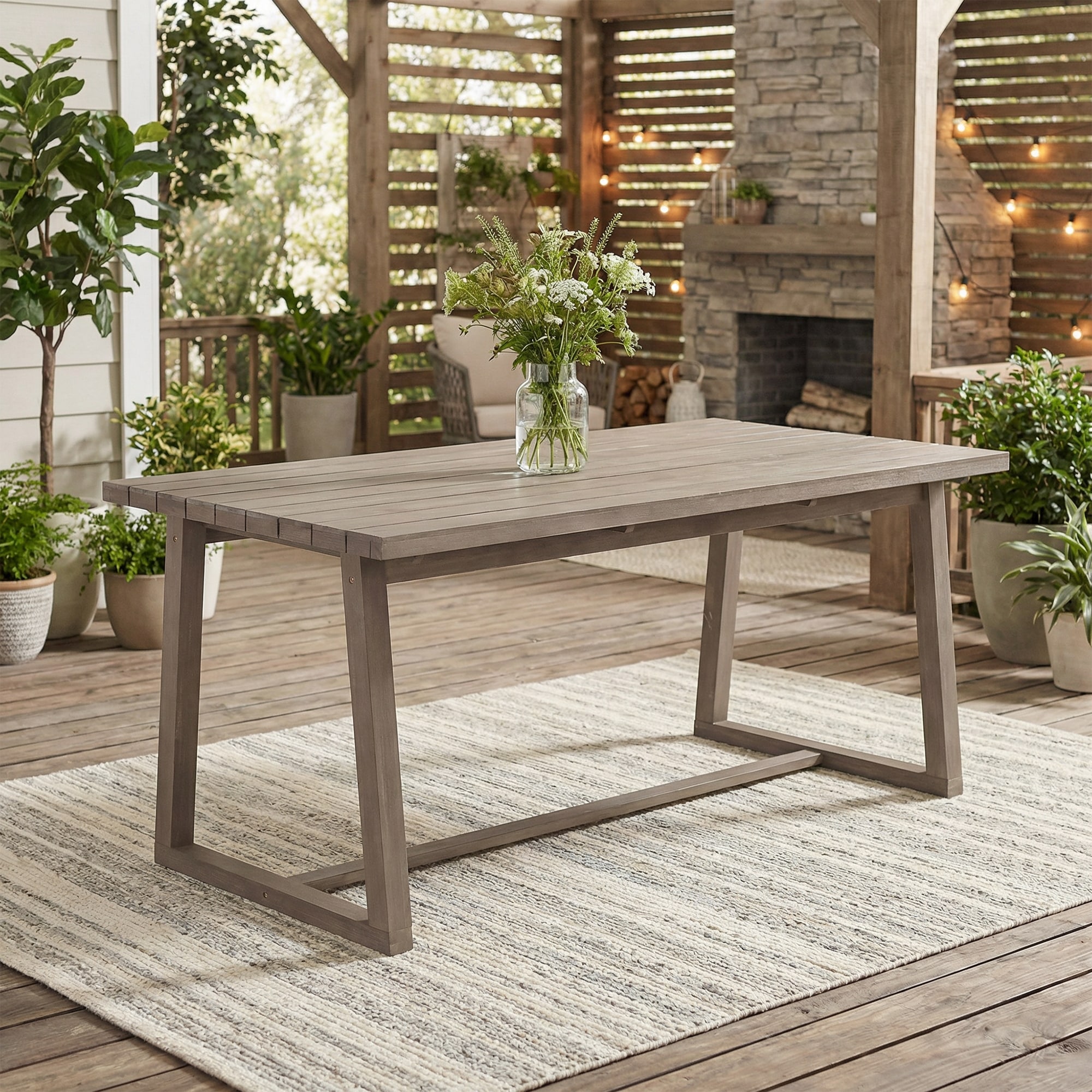 Roomfitters 70" Modern Outdoor Rectangle Dining Table with Slatted Wood Top for Patio Deck Backyard Garden