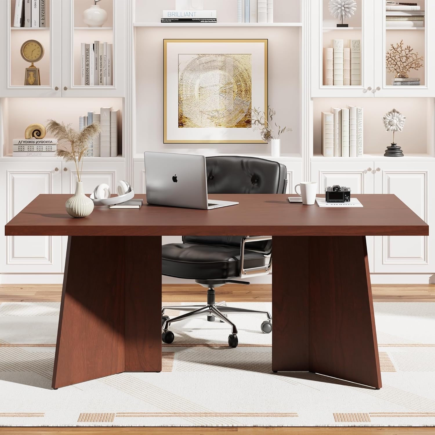 63"Farmhouse Long Dining Table for 6-8 People - Extra Thick Tabletop & Heavy-Duty Metal Legs,Brown