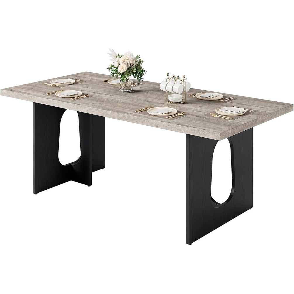 71" Farmhouse Long Dining Table for 6-10 People - Extra Thick Tabletop & Heavy-Duty Metal Legs,Gray