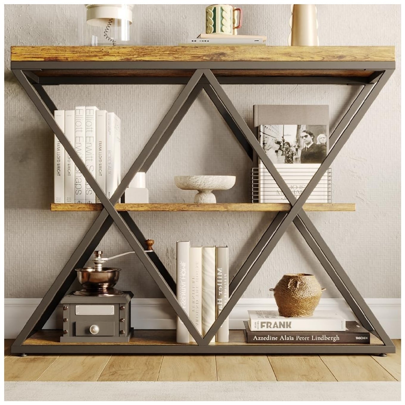 3-Tier Entryway Table, Industrial Console Sofa Table with Storage, Accent Table with Open Shelves