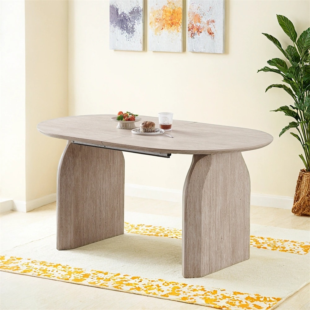 Wood Extendable Dining Table,Oval Kitchen Table w/Dual - Pillar Design