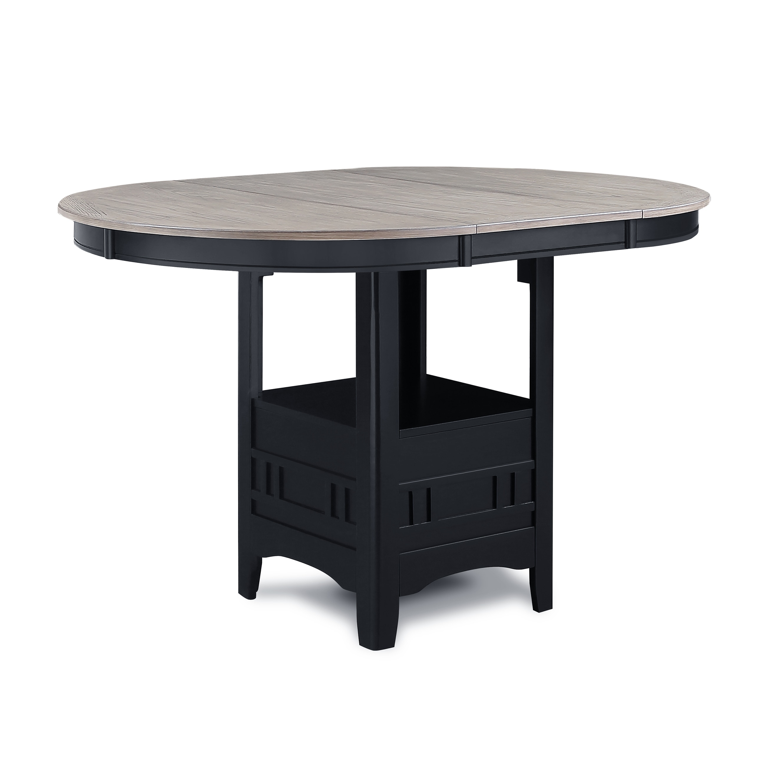1pc Casual Counter Height Kitchen 18" Extendable Leaf Storage Table Pedestal Base Design Wooden Dining Room Charcoal