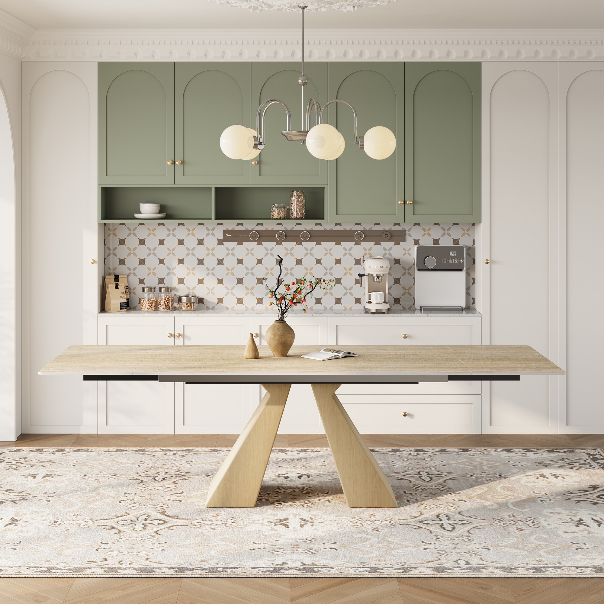 Modern Square Dining Table, Stretchable, X-Shape Table Leg with Metal Base