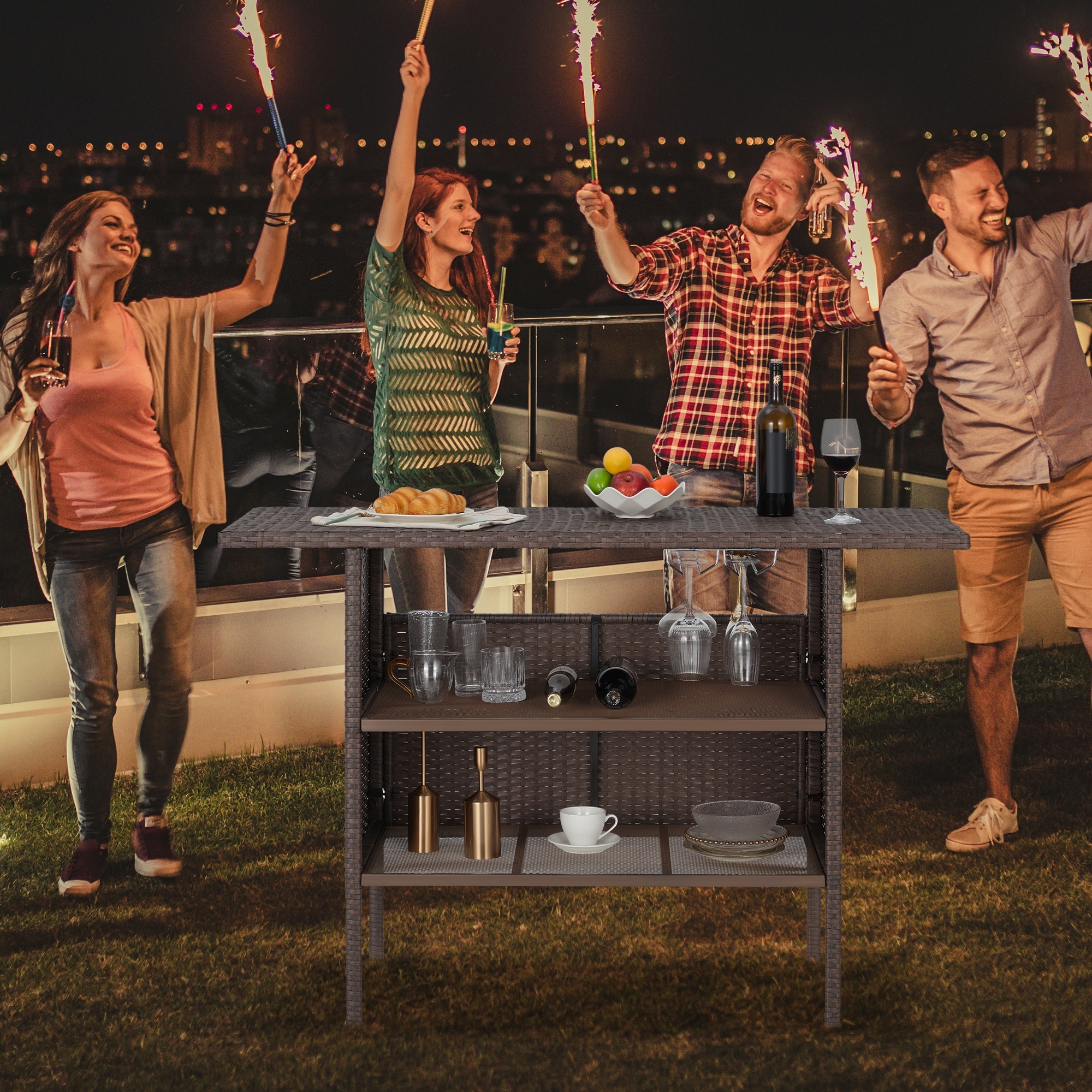 AVAWING Patio PE Wicker Bar Table Rattan Bar Counter Table