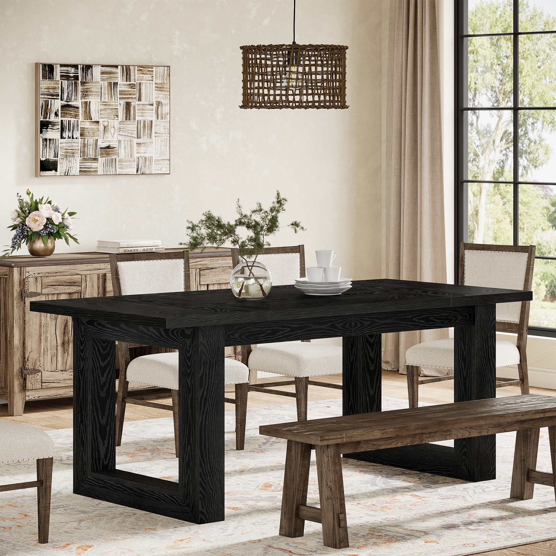 Large Dining Table Wood Oak Rectangular Farmhouse Center Kitchen