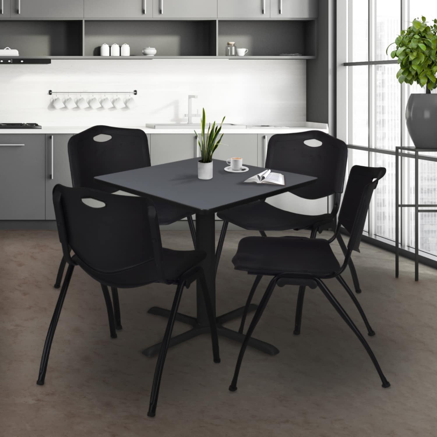 36" Square Breakroom Table- Grey & 4 'M' Stack Chairs- Black - Grey, Black - 36