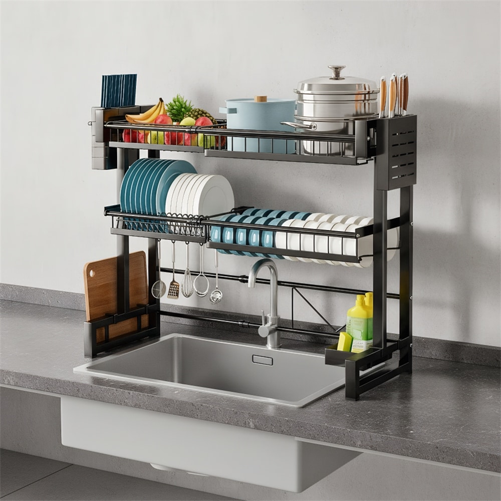 Adjustable Over Sink Dish Drying Rack for Kitchen Use