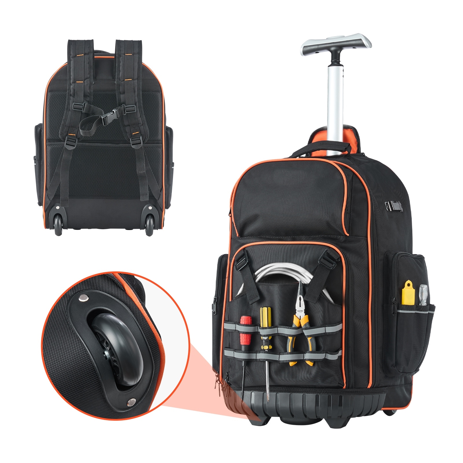 Anmytek Rolling Tool Backpack 72 Pockets Heavy Duty Professional Tool Bag on Wheels Organizer