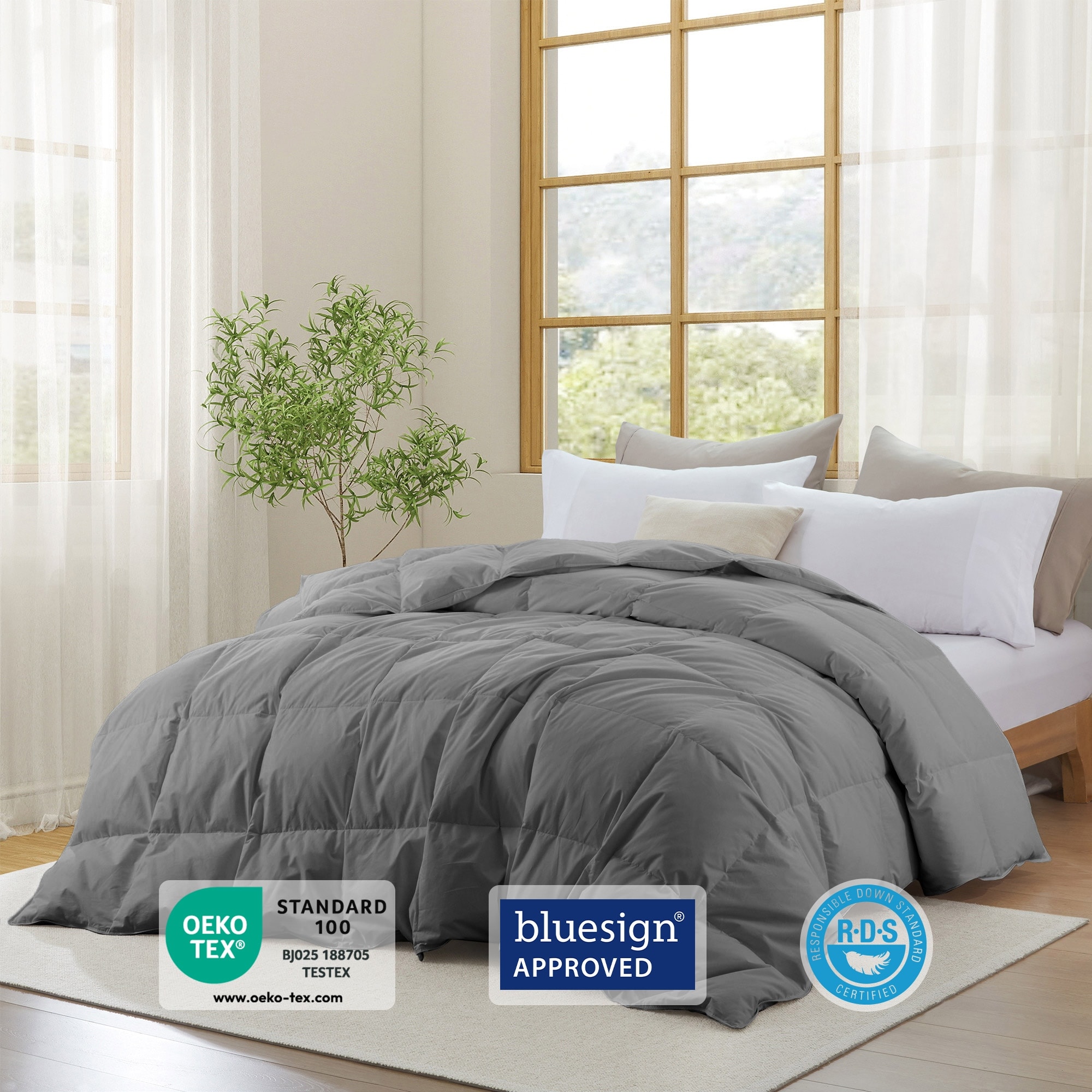 Medium Warmth 300TC Organic Cotton Down Comforter - 100% Natural, Chemical-Free, All Season Duvet Insert