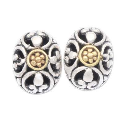 Oval Glam,'Oval Gold Accented Sterling Silver Stud Earrings from Bali'
