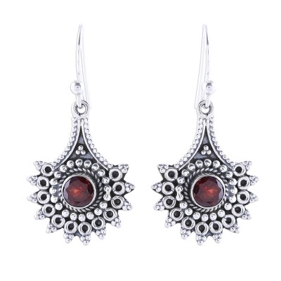 Gemstone Flowers,'Handmade Garnet Dangle Earrings from India'