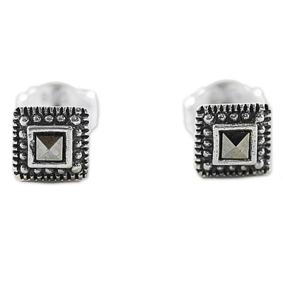 Gorgeous Love,'Sterling Silver and Marcasite Square Stud Earrings'