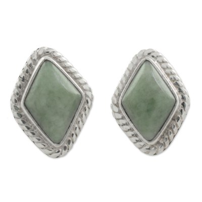 Diamond Lassos,'Light Green Jade Rhombus Stud Earrings from Guatemala'