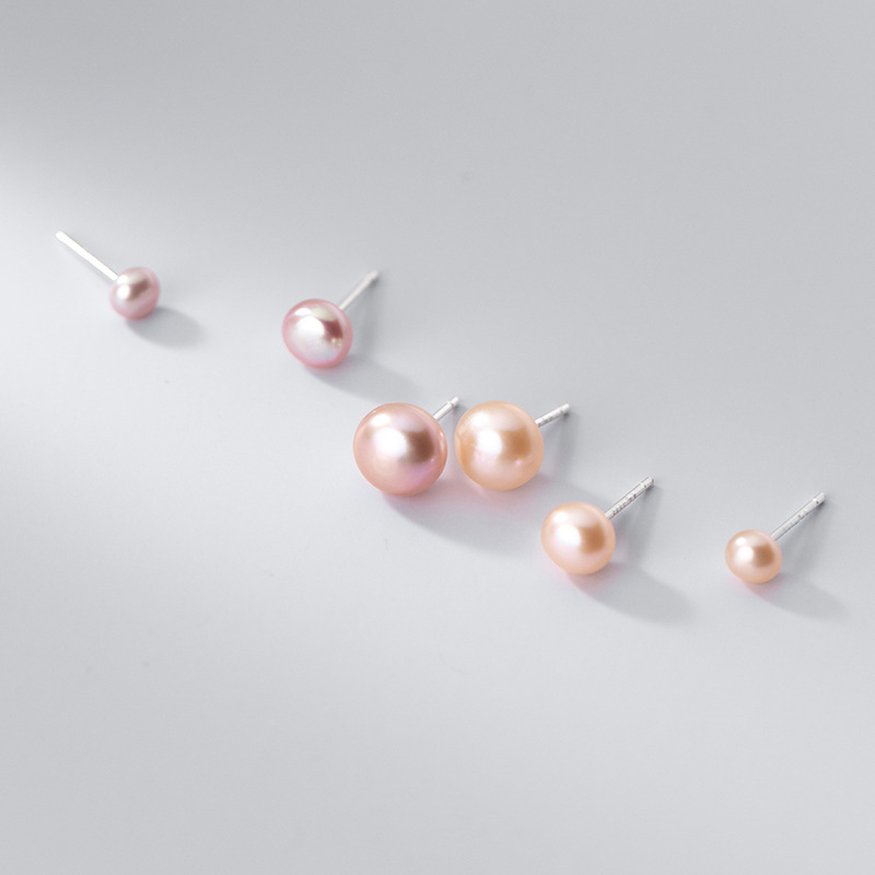 INZATT INS 925 Sterling Silver Freshwater Pearl Stud Earrings Women's Fine Minimalist Jewelry pink