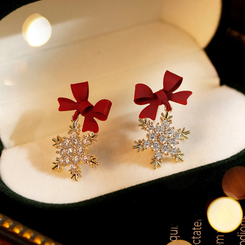 Santa Claus Snowman Earrings, New Red Bow Knot Snowflakes, Drop Earring For Women Christmas, Jewelry Gifts For Girls red