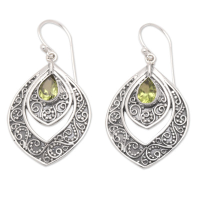 Party Queen in Green,'Sterling Silver Fashion Dangle Earrings with Peridot Stone'