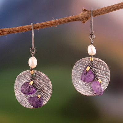 Lights of Wisdom,'Amethyst and White Cultured Pearl Dangle Earrings from Peru'