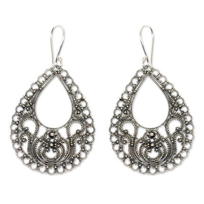 Infinite Charm,'Sterling Silver Infinity Symbol Thai Dangle Earrings'