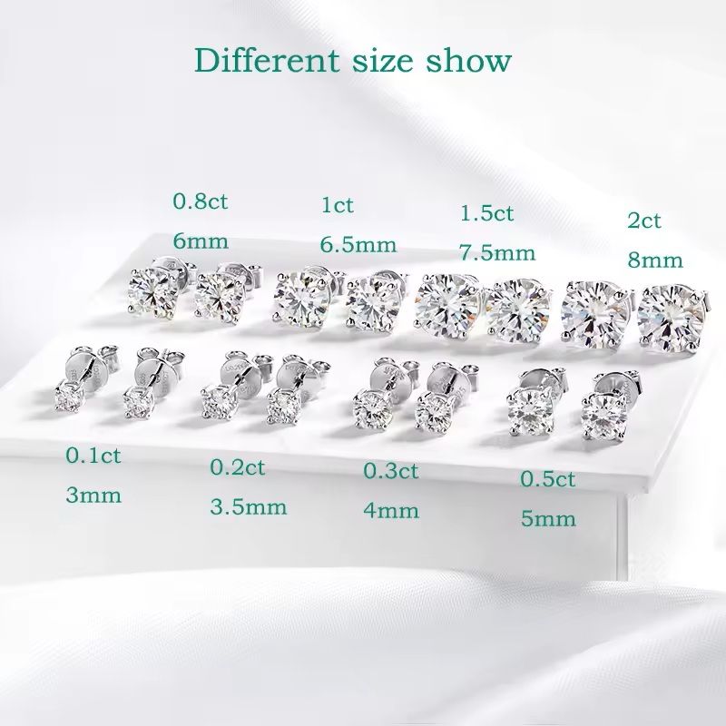 Moissanite Stud Earrings In S925 Silver With Platinum Plating 0.8ct & 0.8ct