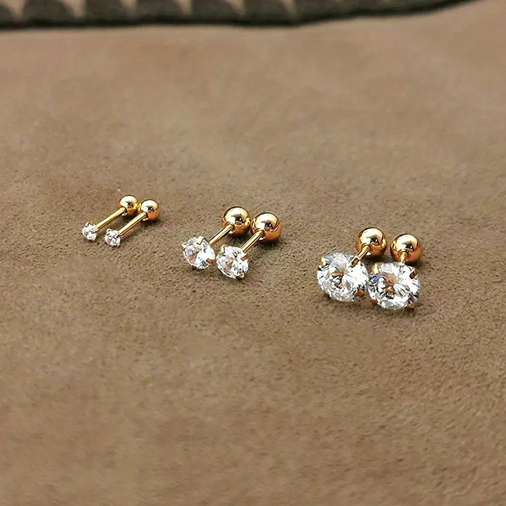 Classic Zircon Stud Earrings For Women, Stainless Steel Cartilage Piercing Jewelry, Elegant Girls Earrings gold Color