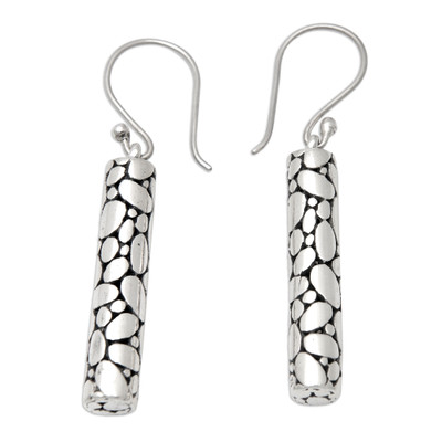 'Bubble-Patterned Cylindrical Sterling Silver Dangle Earrings'