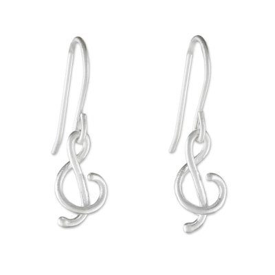 G-Clef,'Sterling Silver G-Clef Dangle Earrings from Thailand'
