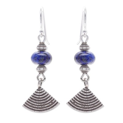 Gleaming Grandeur,'Lapis Lazuli Dangle Earrings from India'
