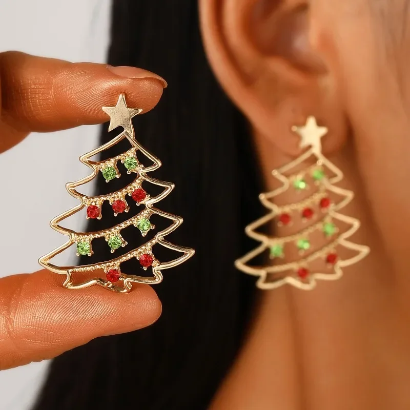 Creative Jewelry, Christmas Colored Zircon, Women's Simple And Fashionable Earrings, Holiday Gift 2