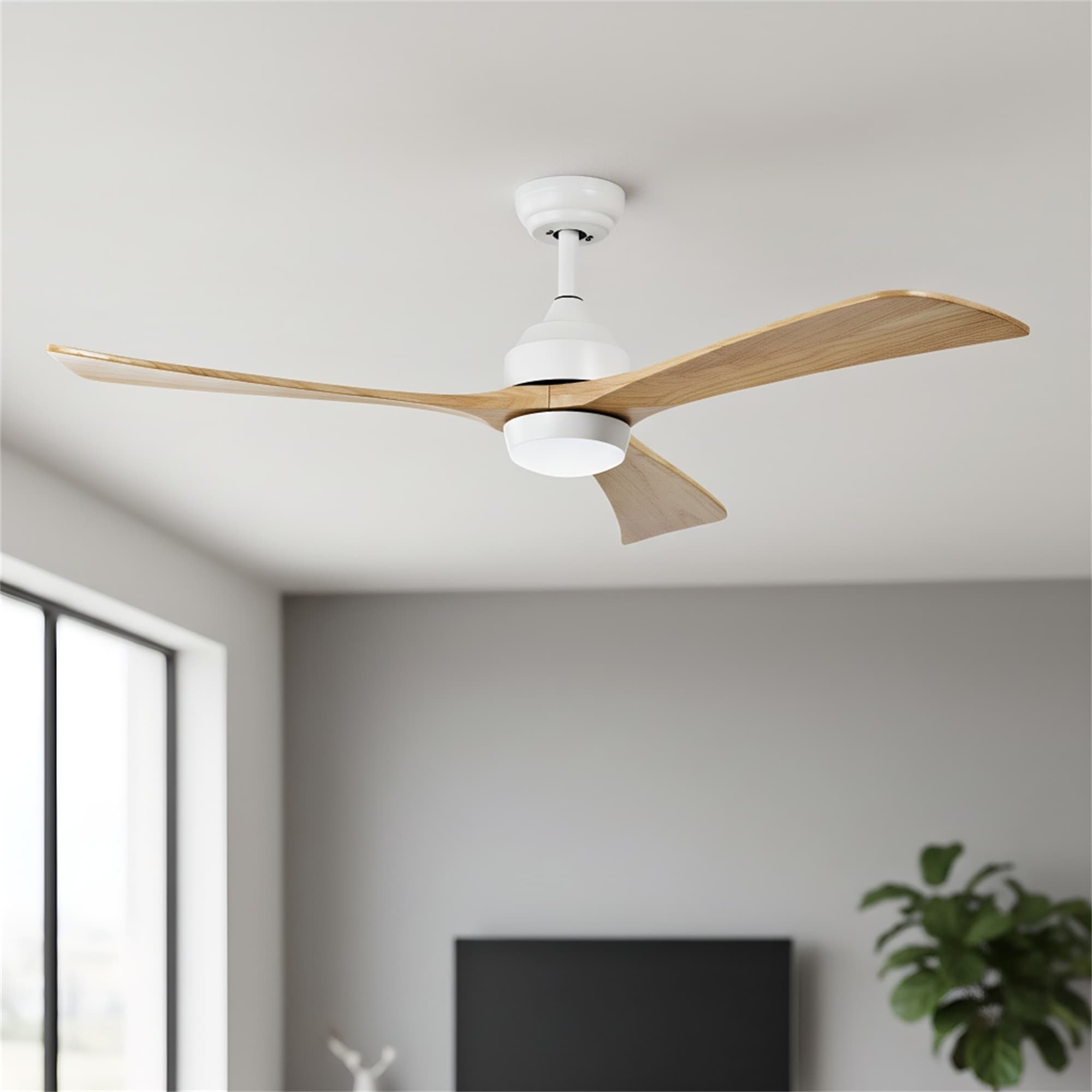 60" Solid Wood 3-Blade LED Ceiling Fan with Light Kit and Remote Control