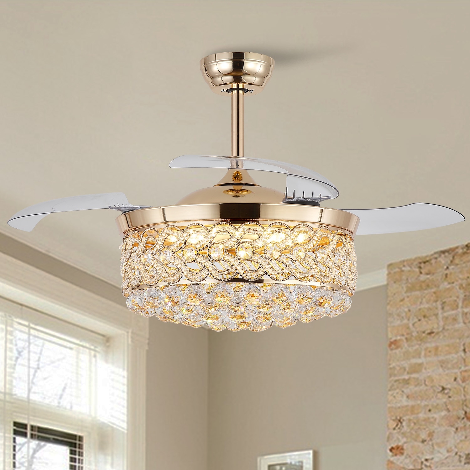 48'' Retractable Ceiling Fan with Lights and Remote 6 Speed, 3 Light Change Retractable Blade Chandelier Ceiling Fan