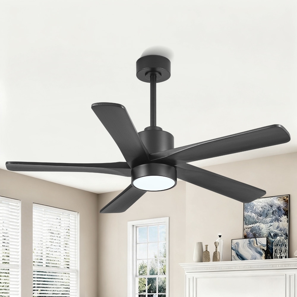 52 Inch Black 5-Blade Integrated LED Ceiling Fan with Light Remote