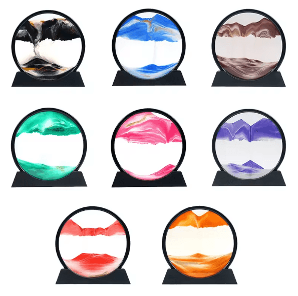 3D Moving Sand Art Picture Round Glass Quicksand Flowing Sand Frame For Relaxing Home Office Decor blue