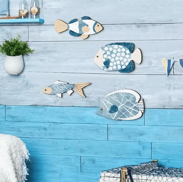 4 Piece Wooden Coastal Fish Wall Decor Rustic Nautical Beach House Art Set 4 Piece Wooden Coastal Fish Wall Decor Rustic Nautical Beach House Art Set